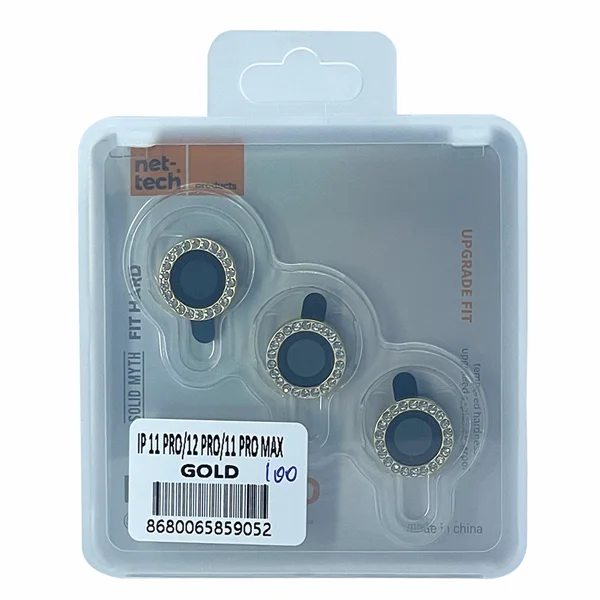 Nettech Apple iPhone 11 Pro Max Uyumlu Diamond Taşlı Model Kamera Cam Koruyucu (Gold) NT-94616