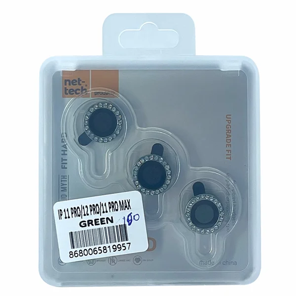 Nettech Apple iPhone 11 Pro Uyumlu Diamond Taşlı Model Kamera Cam Koruyucu (Yeşil) NT-98914
