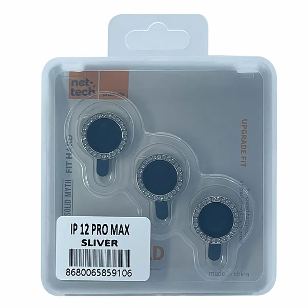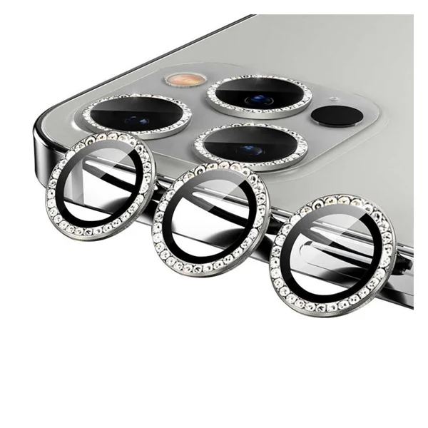 Nettech Apple iPhone 12 Pro Max Uyumlu Diamond Taşlı Model Kamera Cam Koruyucu (Gri) NT-94611