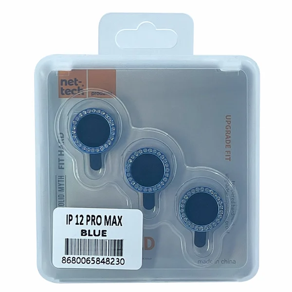 Nettech Apple iPhone 12 Pro Max Uyumlu Diamond Taşlı Model Kamera Cam Koruyucu (Mavi) NT-95758