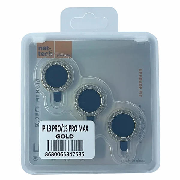 Nettech Apple iPhone 13 Pro Max Uyumlu Diamond Taşlı Model Kamera Cam Koruyucu (Gold) NT-95823