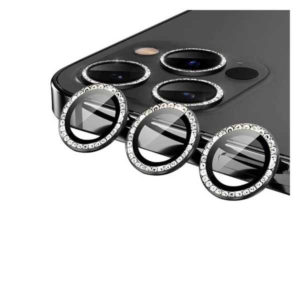 Nettech Apple iPhone 13 Pro Max Uyumlu Diamond Taşlı Model Kamera Cam Koruyucu (Siyah) NT-95763