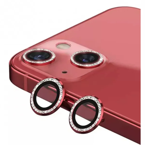 Nettech Apple iPhone 14 Uyumlu Diamond Taşlı Model Kamera Cam Koruyucu (Kırmızı) NT-97519