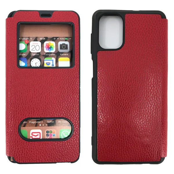 Nettech Samsung Galaxy M51 Uyumlu Pencereli Kapaklı Kılıf (Kırmızı) NT-84476
