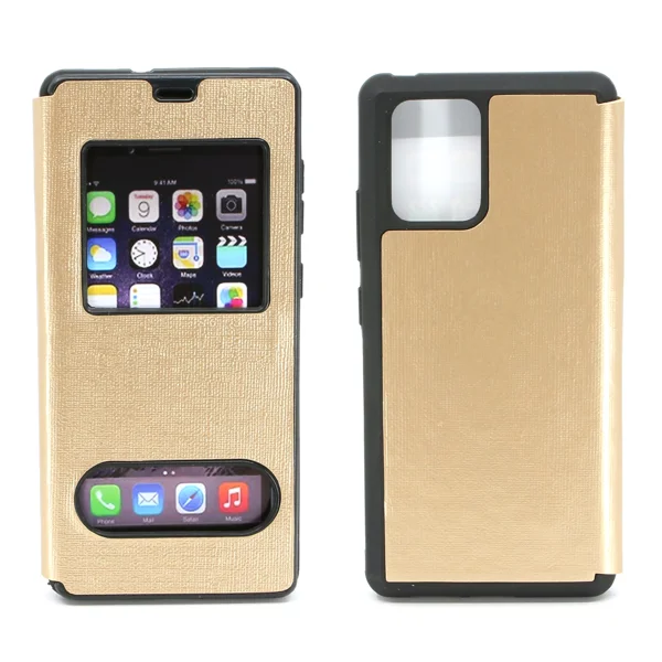 Nettech Samsung Galaxy S10 Lite Uyumlu Pencereli Kapaklı Kılıf (Gold) NT-79935