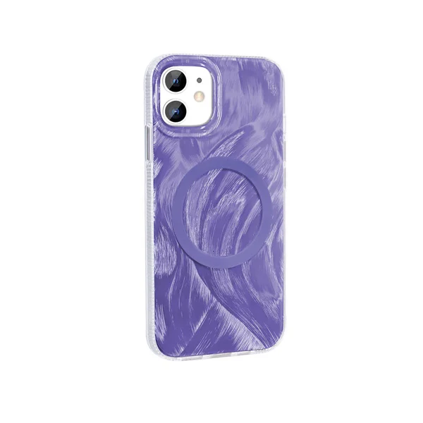 Apple iPhone 11 Kılıf Magsafe Şarj Özellikli Fırça Boya Desenli Zore Palet Kapak - Mor
