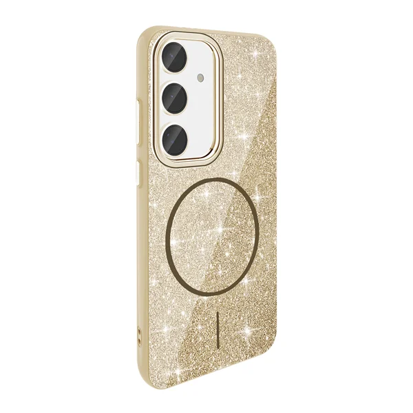 Galaxy S23 FE Kılıf Magsafe Şarj Özellikli Parlayan Simli Zore Okso Kapak - Gold