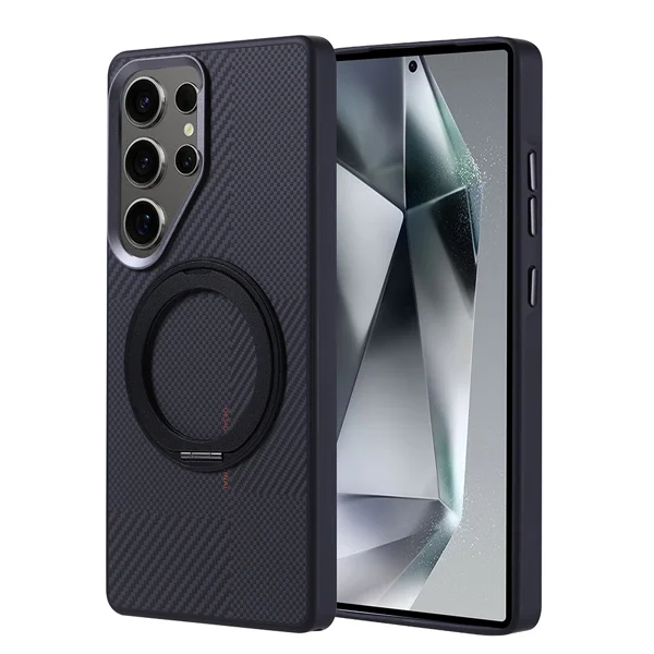 Galaxy S25 Ultra Kılıf Magsafe Şarj Özellikli Karbon Fiber Görünümlü Zore Standlı Troy Kapak - Siyah - 1