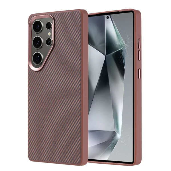 Galaxy S25 Ultra Kılıf Magsafe Şarj Özellikli Karbon Fiber Görünümlü Zore Troy Kapak - Gold