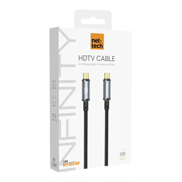 Nettech NT-DC49 USB3.2 20Gbps HDTV Plastik 100 Cm Type-C To Type-C Şarj ve Data Kablosu (Siyah) NT-108322